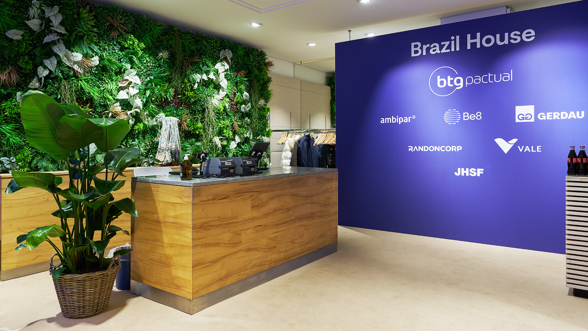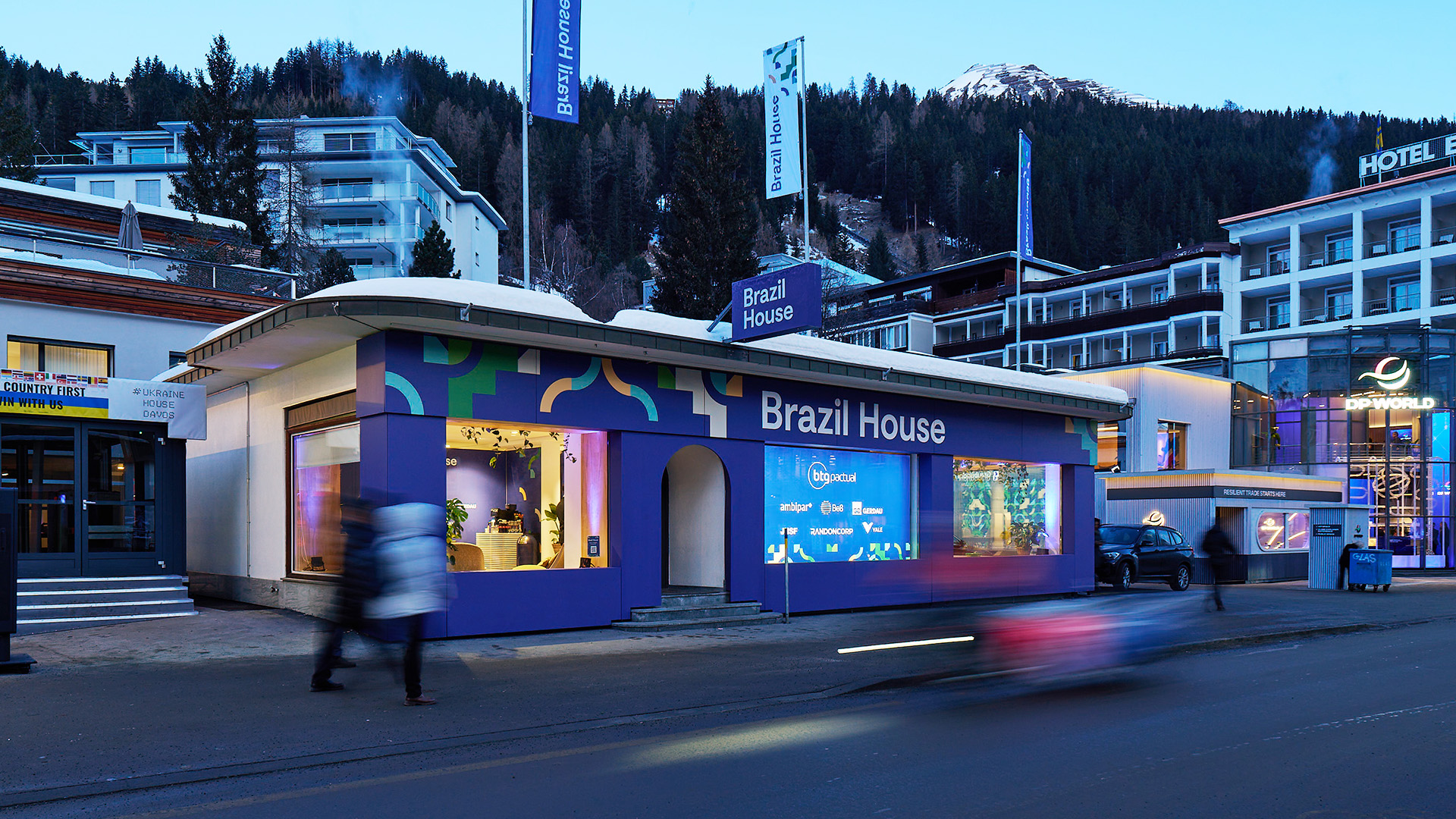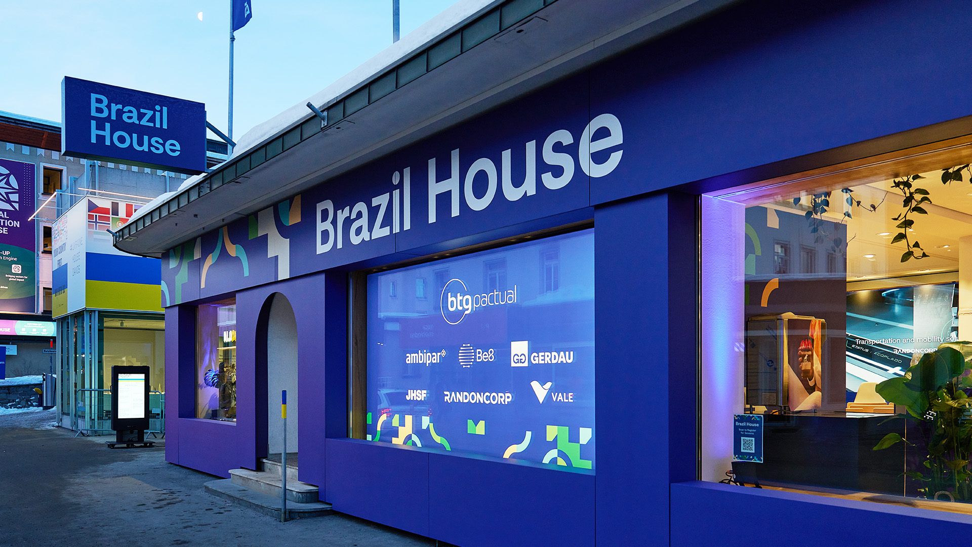 Für das Brazil House konnte ich in Zusammenarbeit mit BTG Pactuals Marketingabteilung und der Agentur Live Lab alle notwendigen Grafik-Anwendungen umsetzen. Die Arbeit umfasste das Gestalten und Aufbereiten der Spannrahmen-Panels im Interieur, wie auch dem Exterieur. Zusätzlich wurden Grafiken für Flaggen, Lightbox und weitere Event-Grafik erarbeitet. Der Pavillion wurde von 6 Brasilianischen Konzernen gesponsort, für welche spezifische Räume und Signaletik umgesetzt wurden. Die restliche Signaletik im Raum wurde gemäss Corporate Identity des Arbeitgebers umgesetzt.