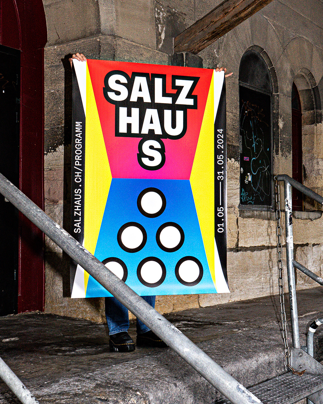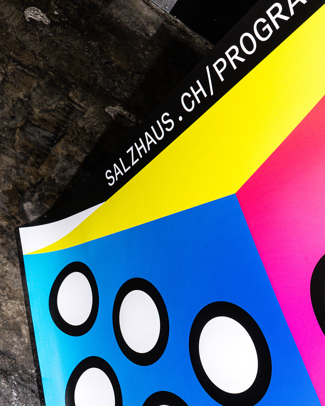 Das Salzhaus Winterthur vergibt jeden Monat die Möglichkeit, das Monats-Programm zu gestalten. Mir war es wichtig, dabei das Logo des Kulturlokals prominent in Szene zu setzen. Die bewusste Betonung der Symmetrie, kontrastreiche Farben und breite Konturen sollten der Gestaltung die nötige Plakativität verleihen.